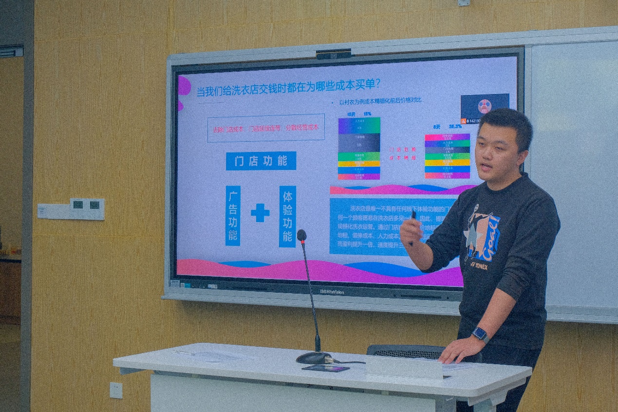 李泓波学长聚焦项目方向、创新技术、市场需求、核心团队、战略规划五个方面展开分享。他结合瑞幸咖啡、沙鼠科技等企业案例,为同学们提出了一些创新创业大赛活动设计的新思路。自身知识储备以及经验都十分丰富的李学长给同学们带来满满干货。他重点提到,同学们要主动寻求导师帮助,同时确定好3-5人的核心团队力量,并分配好角色。
