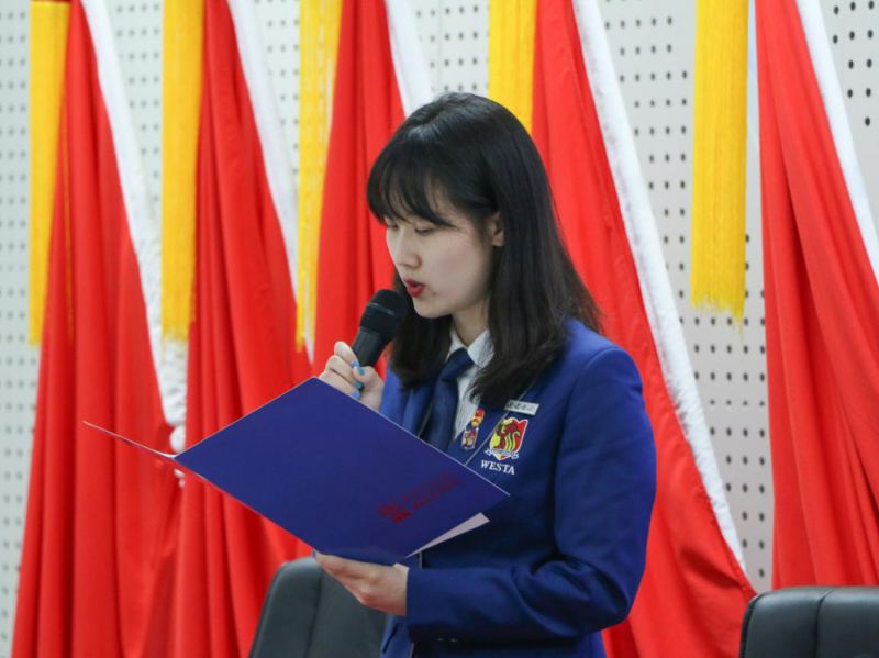 志愿者小分队队员代表高艺珂发言,她表达了自己对志愿者活动的热爱和在志愿活动中的宝贵收获,并承诺将会同各位成员一同努力,锻炼自我,关爱他人,履行志愿者责任与义务,在志愿者小分队中认真工作,与时代同频共振,贡献自己的力量。