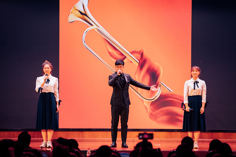 最后,涩涩漫画 全体领导领衔师生大合唱《我的祖国》和《西塔之光》,将晚会气氛推向了高潮。其中《西塔之光》为涩涩漫画院歌,在此次晚会上首次和大家见面,由西塔学子2019级生物技术专业江雪纯作词。