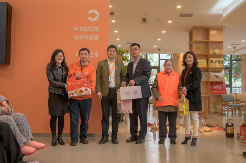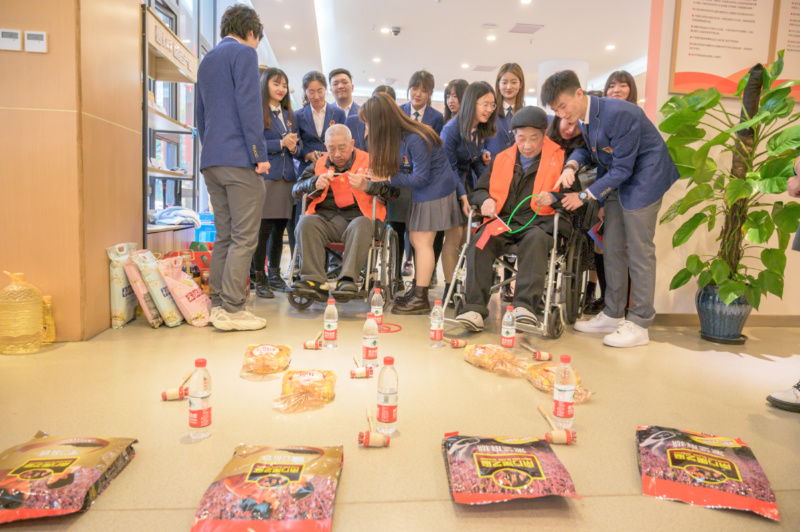 西塔党员师生还为老人们送上新鲜水果、牛奶、大米和油等慰问品。大家为老人捶背、按摩、剪指甲,与老人聊天谈心、下棋娱乐,还陪老人玩他们最喜欢的套圈游戏,养老院里一片欢声笑语,春意融融。