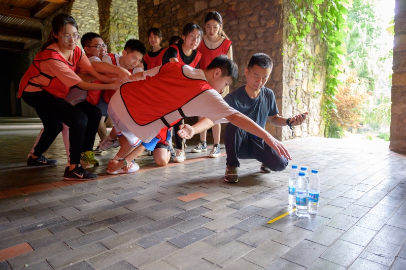 每队成员须在距离矿泉水瓶1米开外的位置,同时在身体部位不能接触地面的情况下,通过团队协助,取得矿泉水瓶。各队在了解规则后,献计献策,齐心协力,总结经验,朝着共同目标努力。此项游戏结束后,王彦表示:“通过这个项目,不仅让我感受到了团队合作的重要性,还引发了我对未来工作的思考。在游戏中不一定是身材最高大的队友去取最远的水瓶,身材娇小的队友因为中心低,反而更有优势。在工作中我们不能仅凭主观感受去妄下定论,换一个思路更能提高完成任务的效率和质量。”