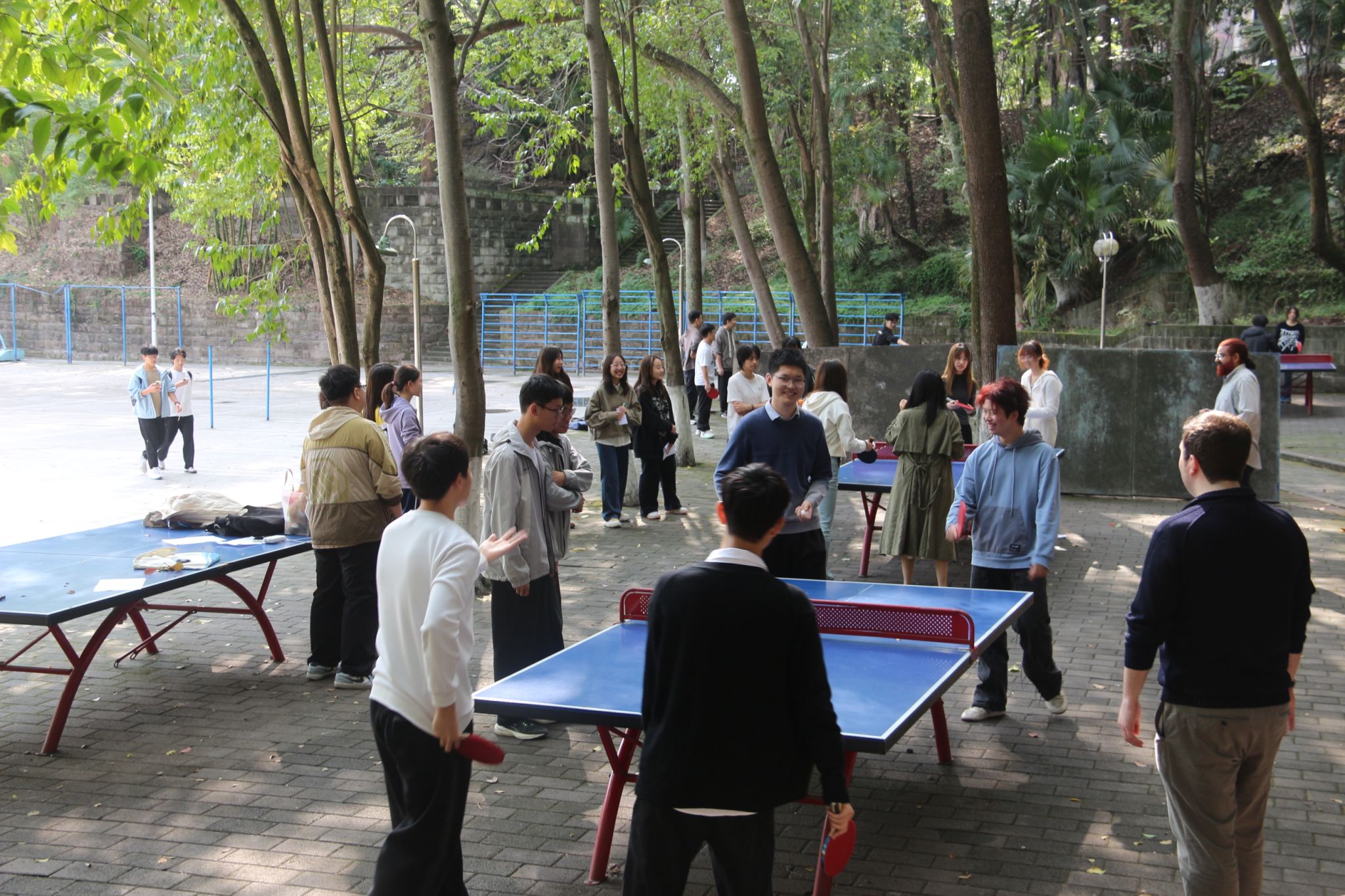师生们首先快速熟悉了乒乓球的常用英语,用全英文讨论乒乓球规则,为接踵而来的比赛蓄能。然后,大家组队酣战,观众们用英语加油助威,现场不仅是体能与技巧的博弈,更是英语实战的舞台。小组们在比赛之前充分进行战术商讨、积极与外教Luke、Basem互动、团队默契逐渐形成。最后,外教Luke、Basem为获胜的5支获胜队伍颁发了精美礼品。
