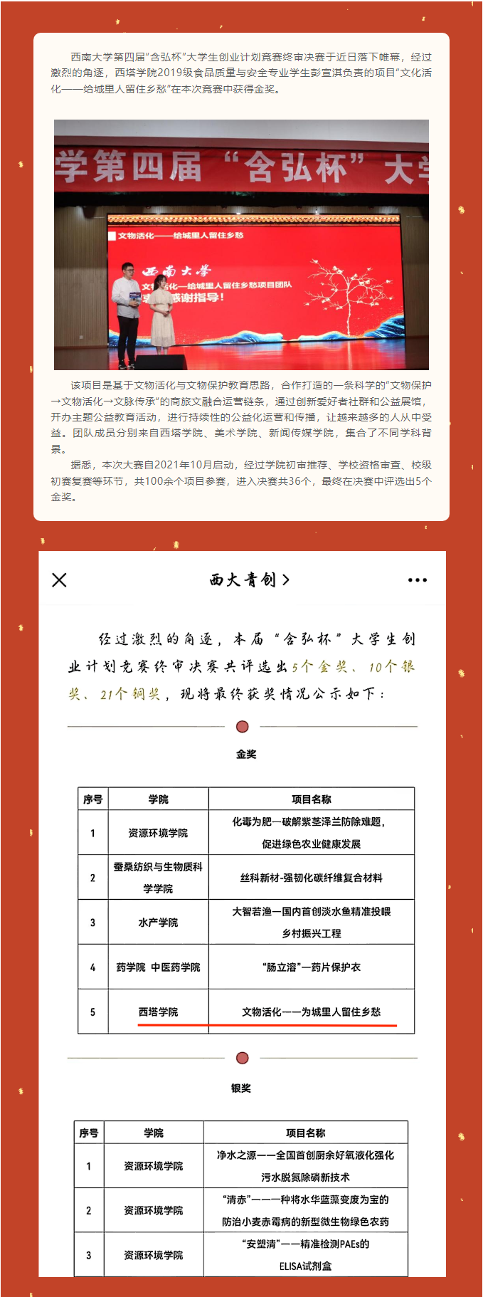 喜报|西塔学子在涩涩漫画 第四届“含弘杯”大学生创业计划竞赛中获金奖