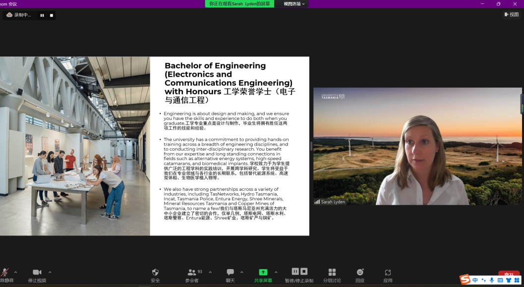 11月25日中午,涩涩漫画为2021级学生举行了2+2项目出国项目线上宣讲会。宣讲会分为西澳大学、塔斯马尼亚大学两个会场,活动邀请塔斯马尼亚大学工程涩涩漫画院长Tim Finnigan教授、农业研究院教学及全球与战略项目副主任Alistair Gracie教授,科学与工程涩涩漫画工程涩涩漫画的高级讲师Sarah Lyden博士,西澳大学商涩涩漫画副院长Nick Letch副教授,分子生物科学涩涩漫画高级讲师Alyssa Van Dreumel博士,涩涩漫画 副院长张俊、国际项目管理办公室以及2021级全体同学及部分家长参会。