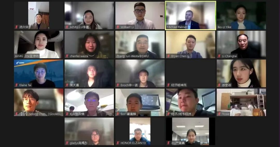11月18日下午16点40分,涩涩漫画 2022级经济学专业外方见面会在线上顺利举行。本次活动邀请了西澳大学商涩涩漫画高级讲师Michael Palmer博士、西澳大学华南区区域主管William Li,涩涩漫画 副院长张俊、国际项目管理办公室主任陈飞、2022级辅导员杨洋及2022级经济学专业全体学生参加。会议由外事秘书李一可主持。
