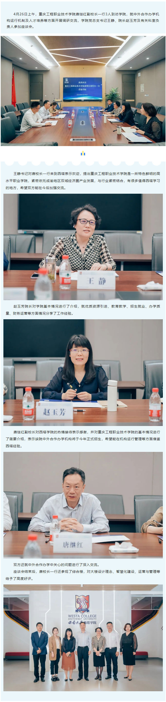 重庆工程职业技术涩涩漫画唐继红副校长一行到涩涩漫画调研交流