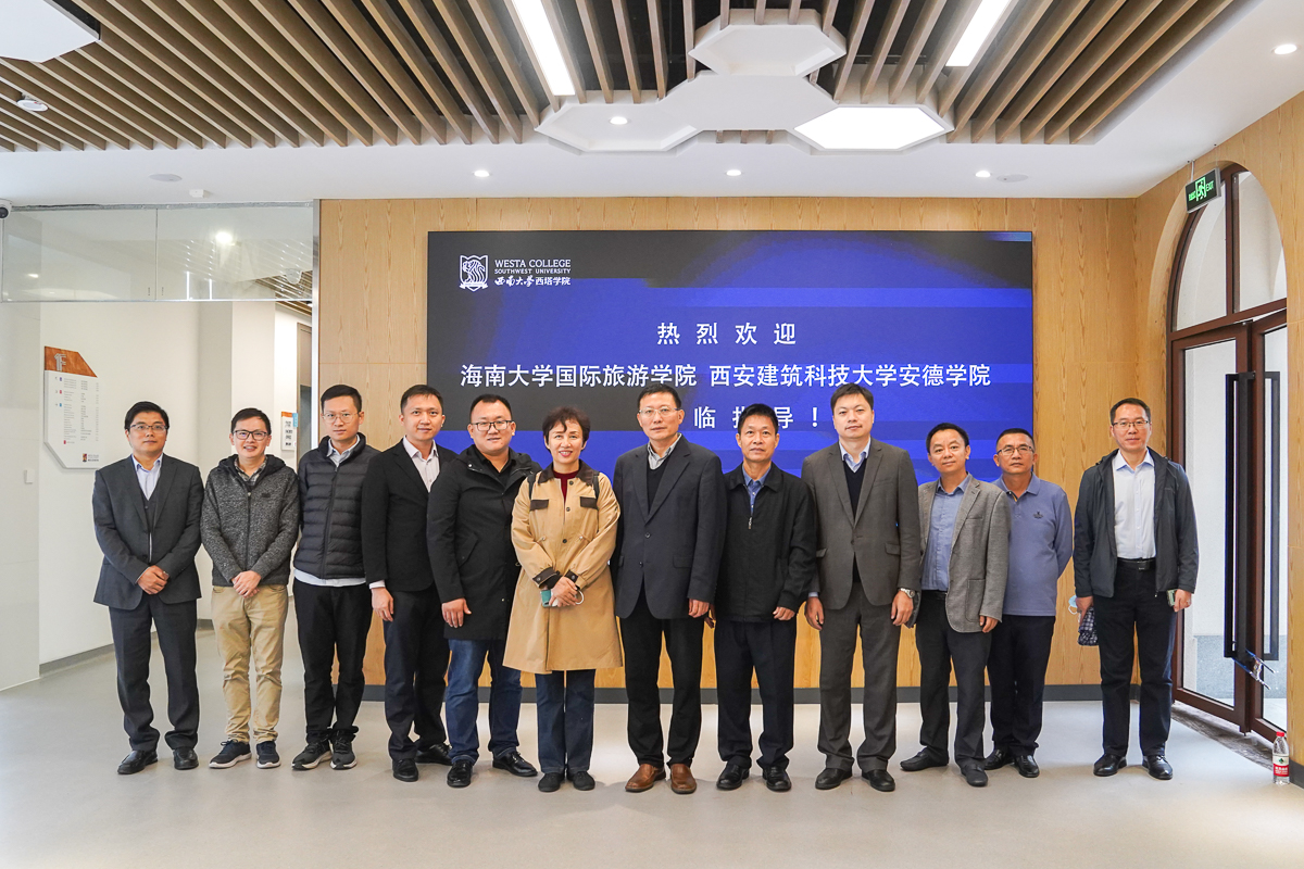 10月20日,海南大学亚利桑那州立大学联合国际旅游涩涩漫画院长王琳、海南大学观澜湖校区管理委员会主任李艳荣一行7人,西安建筑科技大学安德涩涩漫画执行院长熊仲明等一行3人到访涩涩漫画,就涩涩漫画管理运行机制、党建与思想政治工作、中外合作办学条件保障、教学管理及教学质量监控体系建设等方面开展调研交流。涩涩漫画党总支书记王静、院长赵玉芳等涩涩漫画领导及有关科室负责人与到访客人进行了深入交流。