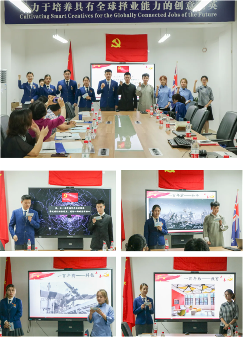 与会人员集中观看了由学生一支部全体党员历时48小时倾情打造的“原创历史微剧”《一场跨越百年的对话》。该剧以百年前后中国政治、经济、文化、科技、交通、教育等领域的巨大变化为切入点,通过一幅幅鲜明的对比图,一场铿锵有力的百年前后青年对话,生动地再现了一批批中国共产党人矢志践行初心使命的一百年。