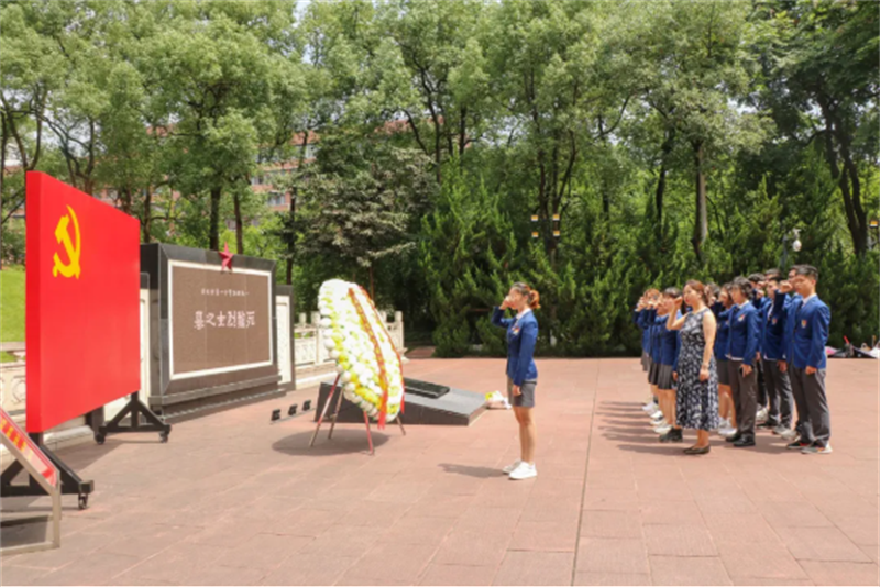 6月30日上午,学生一支部赴红岩魂陈列馆、烈士墓、白公馆、渣滓洞等红岩精神圣地开展主题为“岁月传颂红岩魂,青春礼赞百年程”的学习实践活动。一张张厚重的照片、一个个感人的故事、一件件旧时的物件,让学生党员们走进了那段刻骨铭心的红岩历史。从坚贞不屈的巾帼英雄江竹筠,到意志坚定、视死如归的陈然,再到年幼牺牲的狱中“信使”小萝卜头…… 一个个爱国、团结、奋斗、奉献的英雄形象深深地印刻在党员同志们的心中。随后,支部成员在烈士墓前面向党旗郑重宣誓,重温入党誓词。