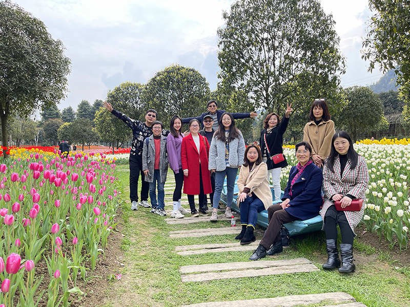 3月5日下午政治理论学习之后,涩涩漫画党总支书记王静带领全体教职工前往太寺垭森林公园踏青赏花,园内竞相绽放的郁金香凭添了浓郁的节日氛围。大家一边沐浴暖阳、观红抚绿,一边谈笑风生、闲话家常,在欢快轻松的气氛中度过了难忘的时光。