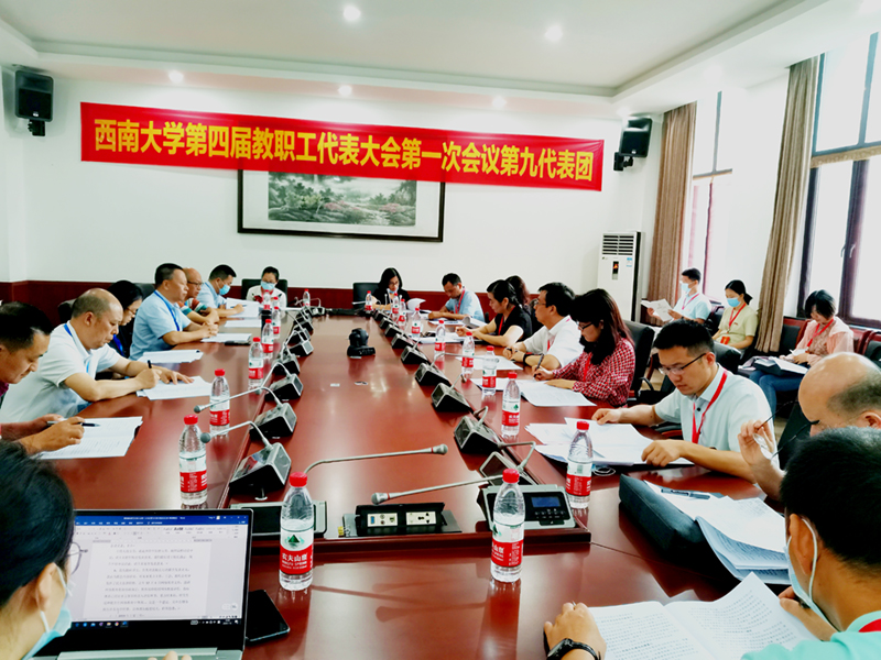 上午10:40,赵玉芳院长以第九代表团团长身份组织开展了第四届教职工代表大会第一次会议的分团审议工作,全体与会代表就相关工作报告、第四届教代会执行委员会委员候选人建议名单、以及大会选举办法开展了审议和讨论。王静书记从学校如何建设特色鲜明的研究型大学、如何在成渝双城经济圈中发挥积极作用、以及如何理顺中外合作办学体制机制、凸显中外合作办学特色优势三个方面做了精彩发言。副校长王进军参加了本次分团审议并发表了重要讲话。