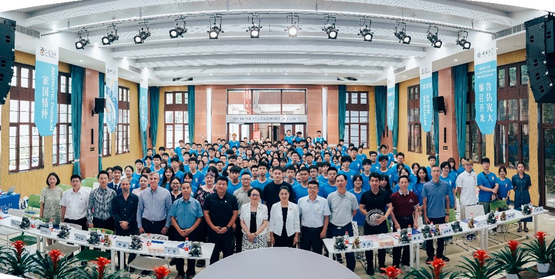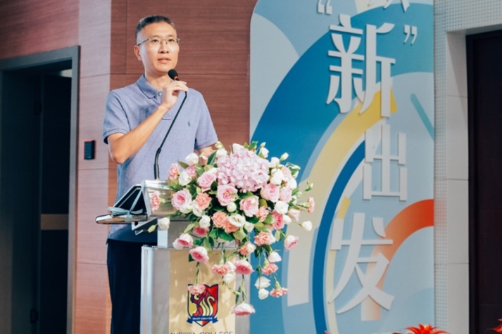 生物技术专业周游老师作为中方教师代表发言。他向来自五湖四海的新同学们致以热烈的欢迎与祝贺,希望新生们树立远大理想,把个人理想与国家民族相结合;追求学术卓越,将学术兴趣与国家需求相结合,将专业精神与爱国奉献相结合;敢于迎接挑战,努力成长为具有全球胜任力的创新人才!