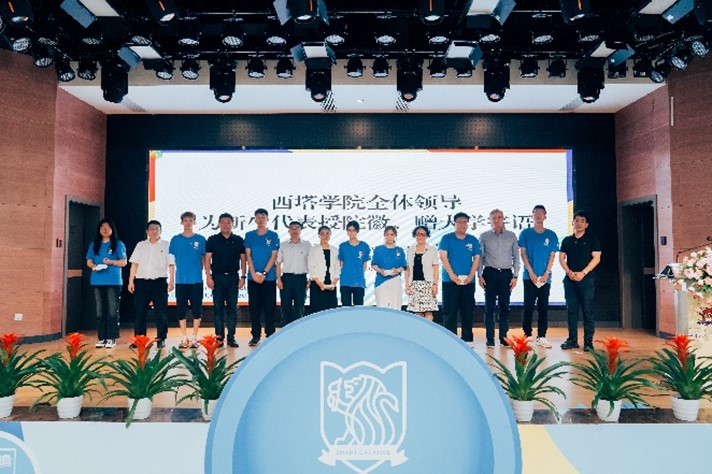 涩涩漫画全体领导、支撑涩涩漫画领导、中外教师代表向2024级新生代表授院徽,表达涩涩漫画对新生的欢迎与接纳,激励引导新生不断传承涩涩漫画“创意精英”的精神。