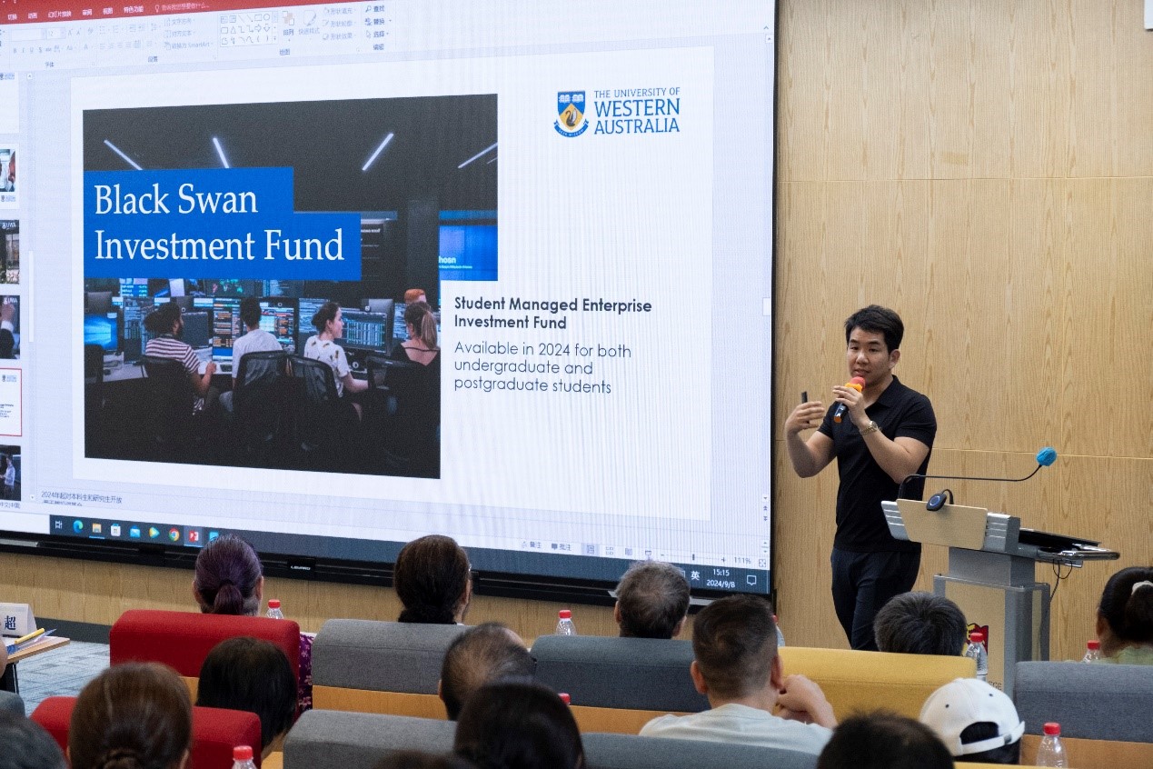 西澳大学商涩涩漫画副教授Frank Liu分享了西澳大学的办学历史、学科发展、校园生活、城市环境等基本情况,并详细介绍了经济学、生物技术专业的培养模式、发展路径、教学质量保障体系、学位授予等情况,他表示非常期待与同学们在西澳相见。