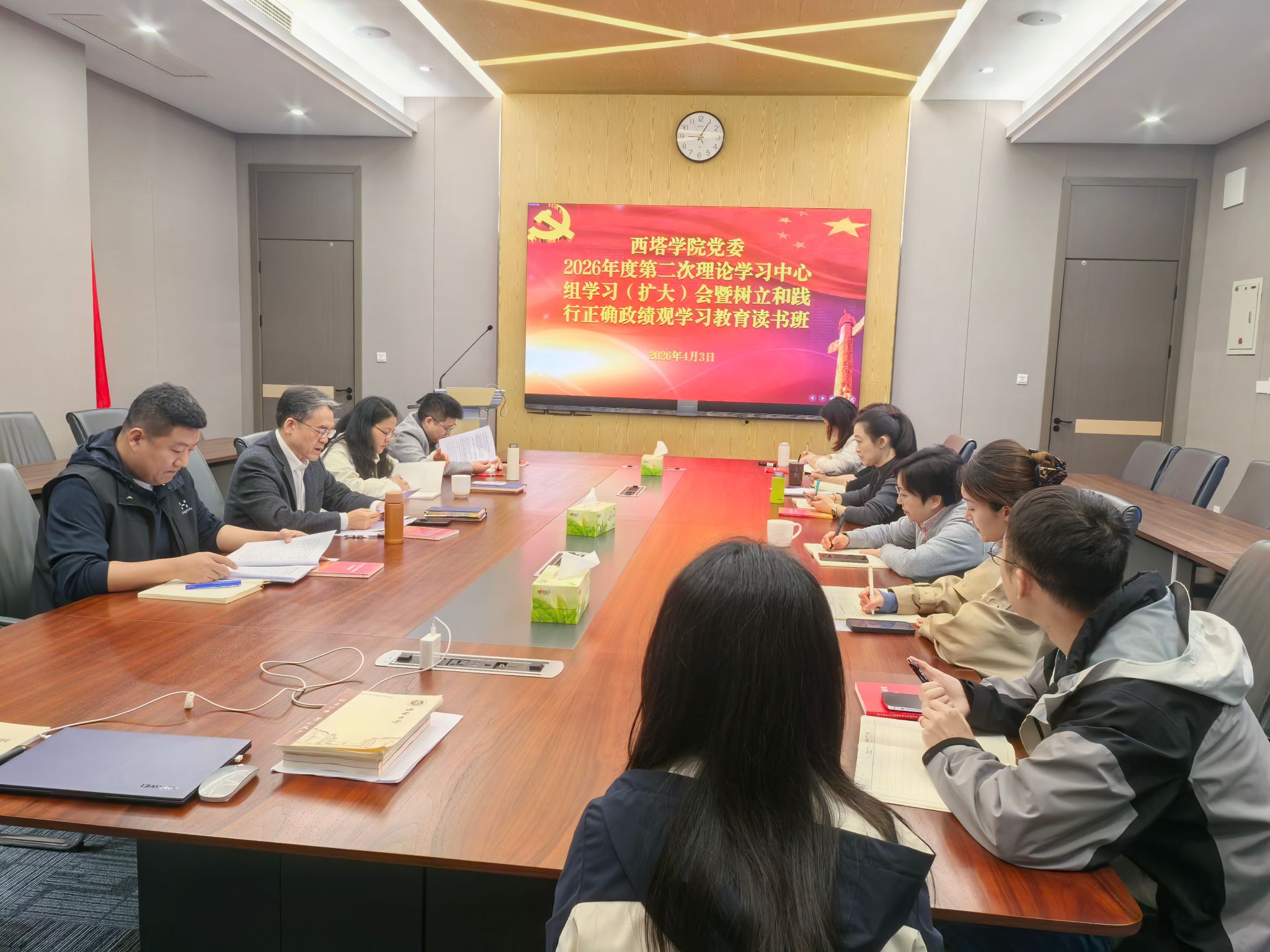 为全面落实树立和践行正确政绩观学习教育相关部署要求,4月3日上午,涩涩漫画 党委在学院2307会议室召开2026年第二次理论学习中心组学习会(扩大),同步举办树立和践行正确政绩观学习教育读书班。学院全体领导班子成员、各科室负责人、各党支部书记参加会议,会议由学院党委书记刘猛主持。