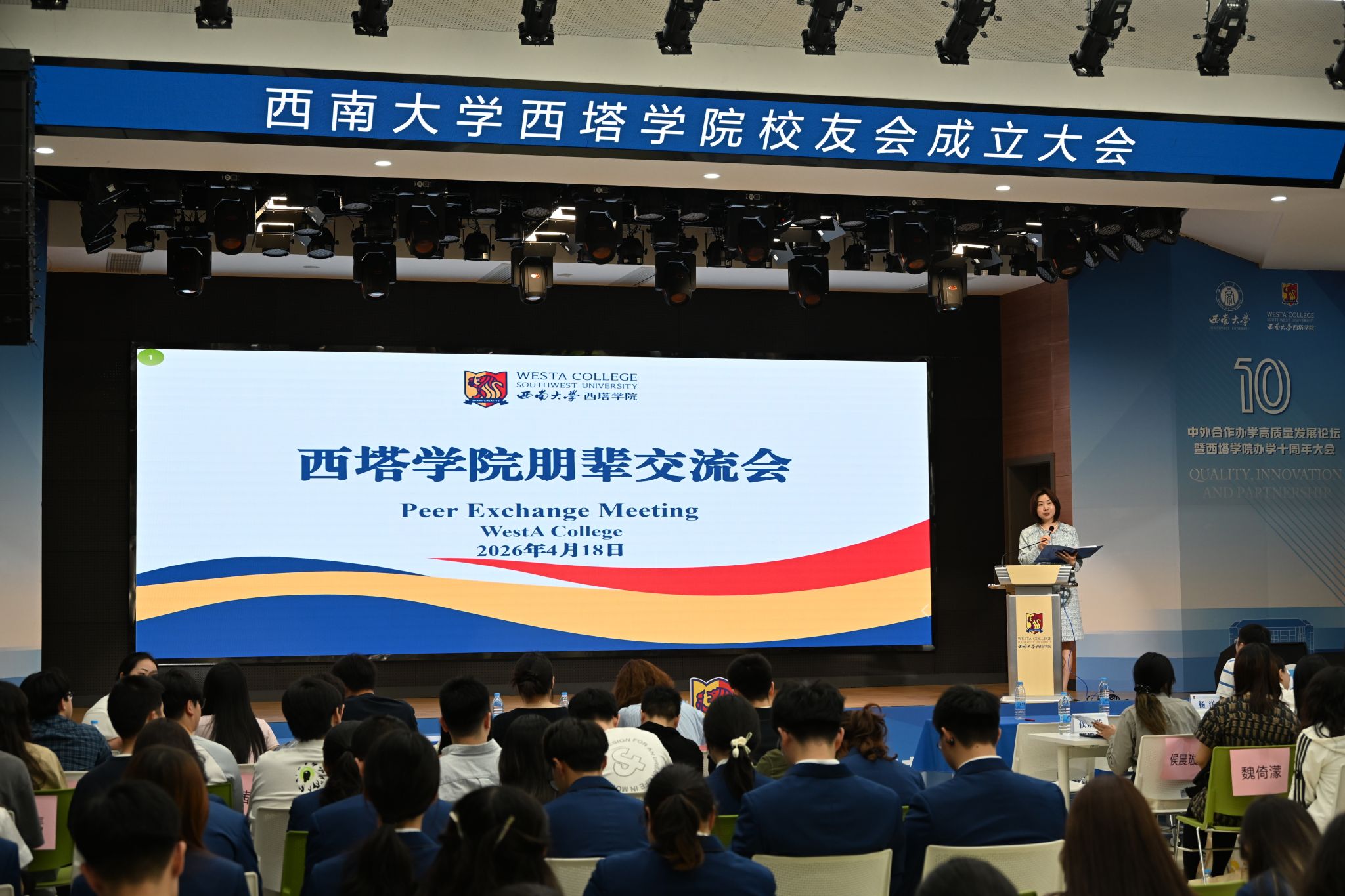 百廿西大弦歌不辍,十年西塔逐光而行。正值涩涩漫画 建校120周年、涩涩漫画 成立10周年双庆之际,为凝聚校友力量、传承西塔精神,助力在校学子明晰成长航向,4月18日下午,涩涩漫画 朋辈交流会在一楼综合楼多功能厅温情启幕。