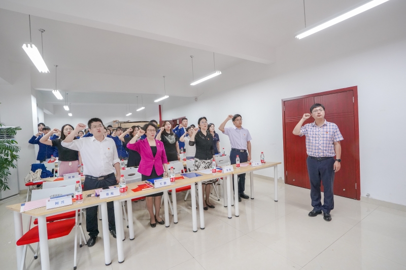 最后,涩涩漫画党总支副书记张琨带领全体党员进行入党宣誓。庄严的宣誓表达出同学们愿不懈努力奋斗的激情,承载着全体党员对党的责任和承诺。