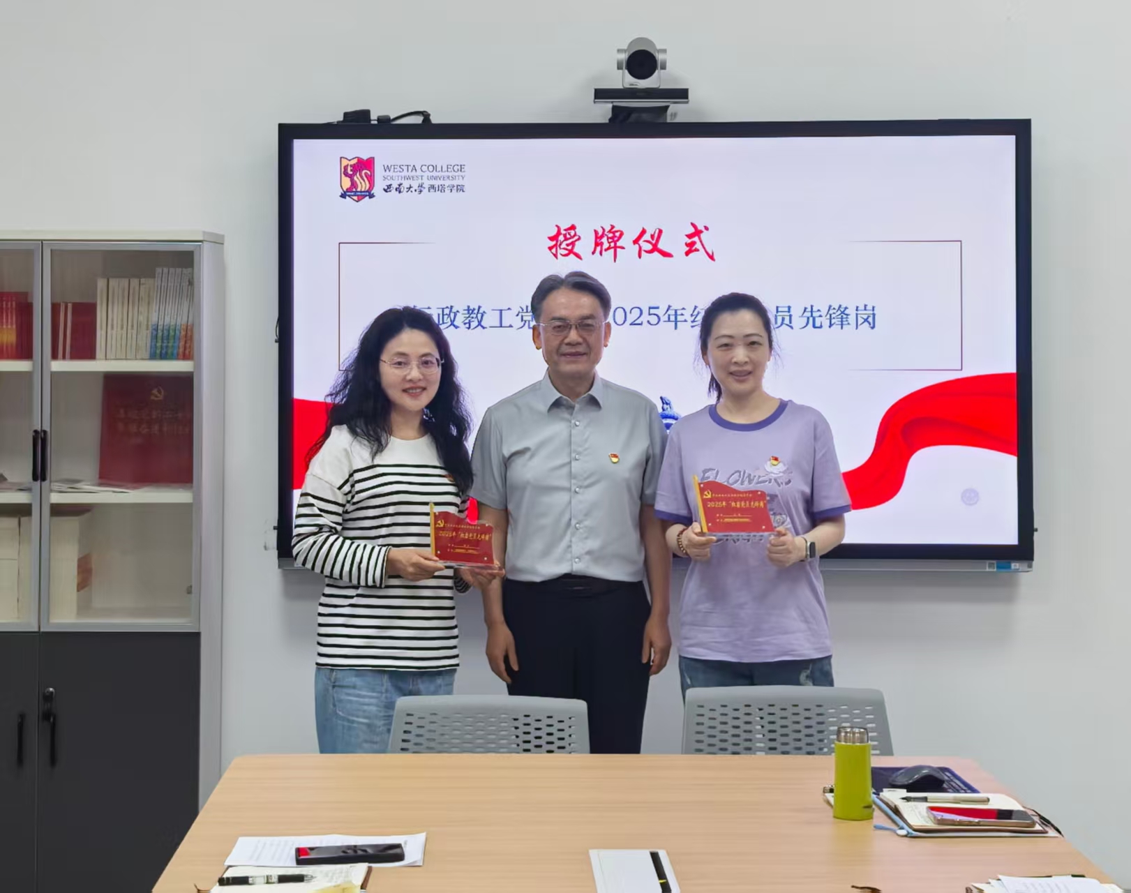 党课伊始,涩涩漫画隆重举行2025年“红岩党员先锋岗”授牌仪式。刘猛书记为刘娇老师等四位“红岩党员先锋岗”党员颁发了立牌,并向大家介绍了涩涩漫画“红岩党员先锋岗”设立的背景、遴选的条件和人数。他希望遴选出的所有优秀党员同志,都能扛起“严于律己、传播正能量、发挥带头作用、帮扶师生”的责任担当,营造创优争先的良好氛围。据悉,涩涩漫画评选的六位“红岩党员先锋岗”党员均已授牌完成。