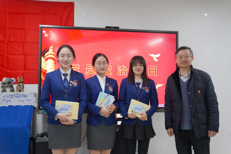 而后,支部成员共同为李佳伊、金毓婵、王智颖三位学生党员过政治生日,周部长为三位同志送上了政治生日礼物。