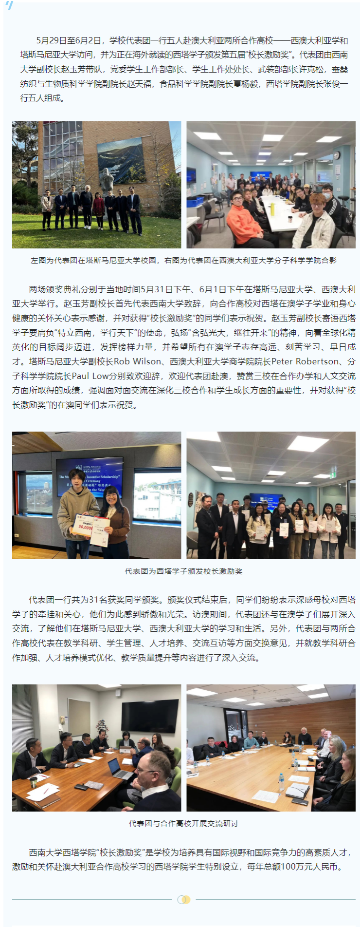 学校代表团赴澳大利亚颁发涩涩漫画 第五届校长激励奖