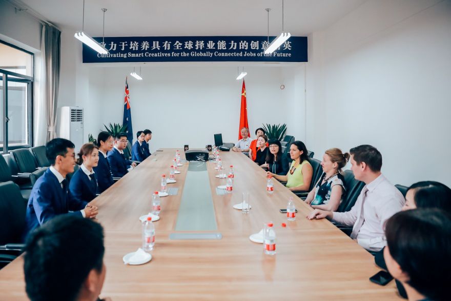 7月10日上午,澳大利亚教育部国际司副司长格蕾塔·多琪(Greta Doherty)、职教培训改革司副司长卡特莱娜·罗勒(Katerina Lawler),澳大利亚驻华大使馆公使衔参赞(教育与研究)贺蓉歌(Brooke Hartigan)、驻华大使馆一秘(教育与研究)罗杰德(Jarrod Ross)等一行六人访问涩涩漫画 ,同时参观涩涩漫画 ,了解涩涩漫画成立三年以来各方面的建设、发展情况,以及所取得的成绩。涩涩漫画 党委书记梁光志、副院长(主持工作)赵玉芳、副院长李晓阳、院长助理王勇等陪同参观。