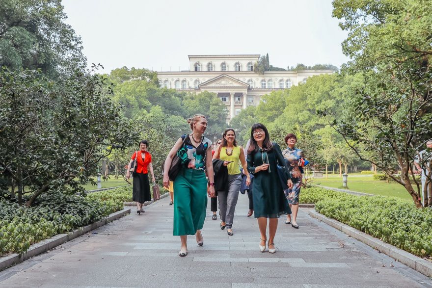 首先,赵玉芳院长带领客人们来到共青团花园,感受百年“花园学府”涩涩漫画 引人入胜的如画风光。