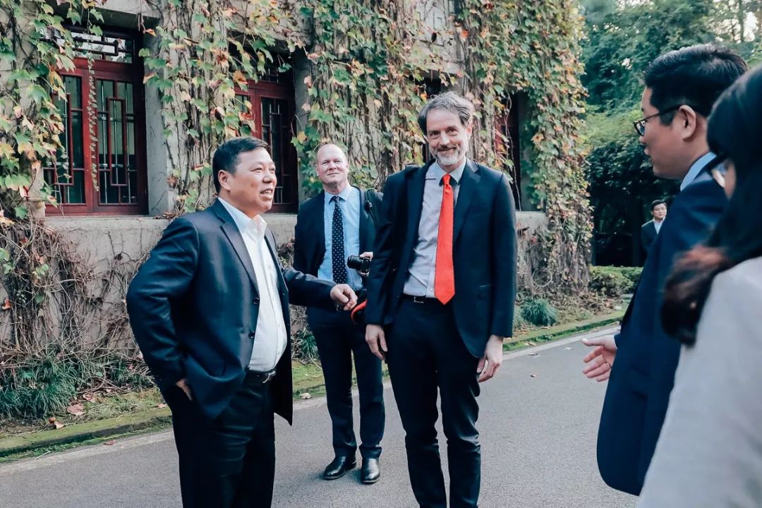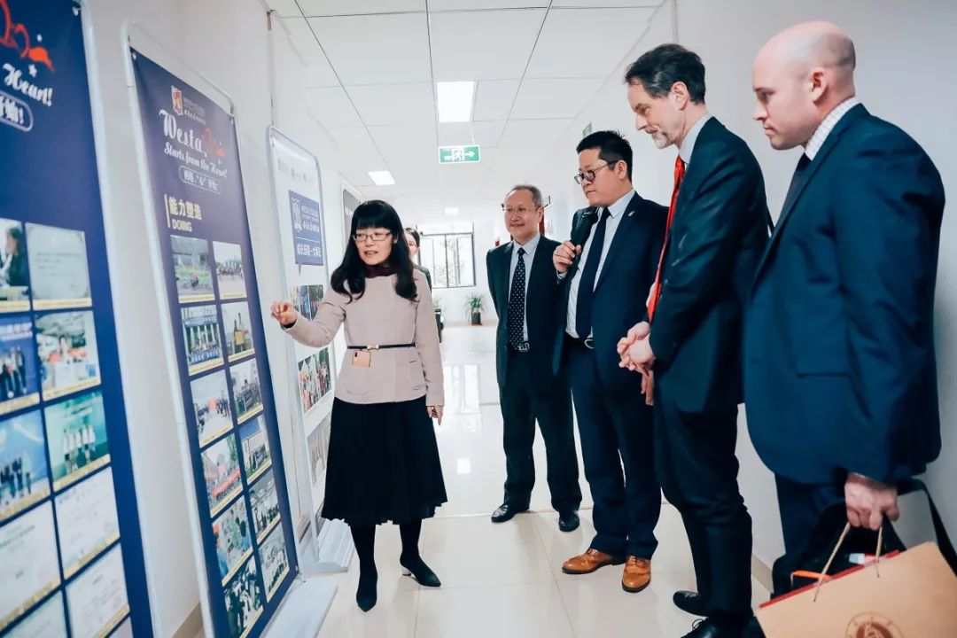 下午5点,鲁弗斯·布莱克校长等来到校史馆进行参观,涩涩漫画 深厚的底蕴和丰富的国际化办学经验给客人留下了深刻印象。参观结束后,张卫国校长在行署楼前与客人热情交谈,共同祝愿两校合作的未来更加美好。