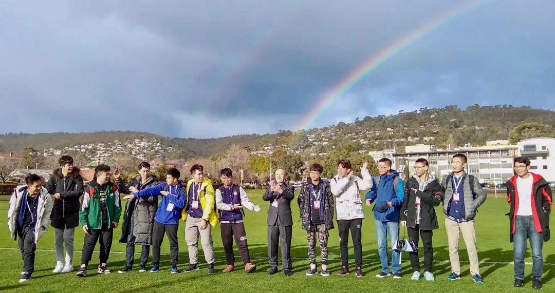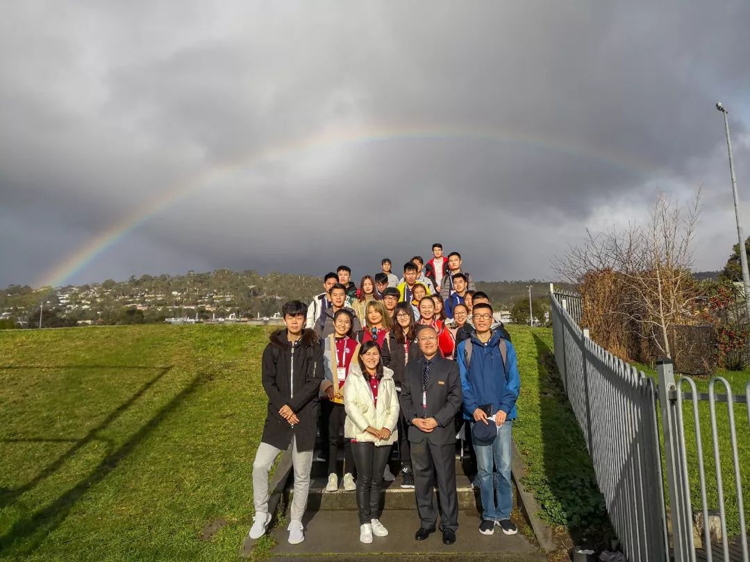 西塔与塔大的美妙邂逅,也伴随着一场冬雨袭来。难得重拾阳光后,一道双拱彩虹悠然架起。风雨之后,总见彩虹;辛劳之果,亦有回甘。双虹乍现,在中澳两所大学之间架起了一座“友谊之桥”。