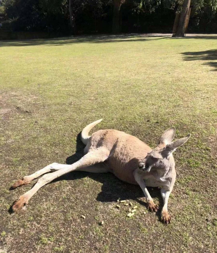 养在动物园里的袋鼠,在原野中蹦跳七八米的活力和野性早被磨平,没有猛兽天敌的威胁,这是一片安然祥和的天堂。