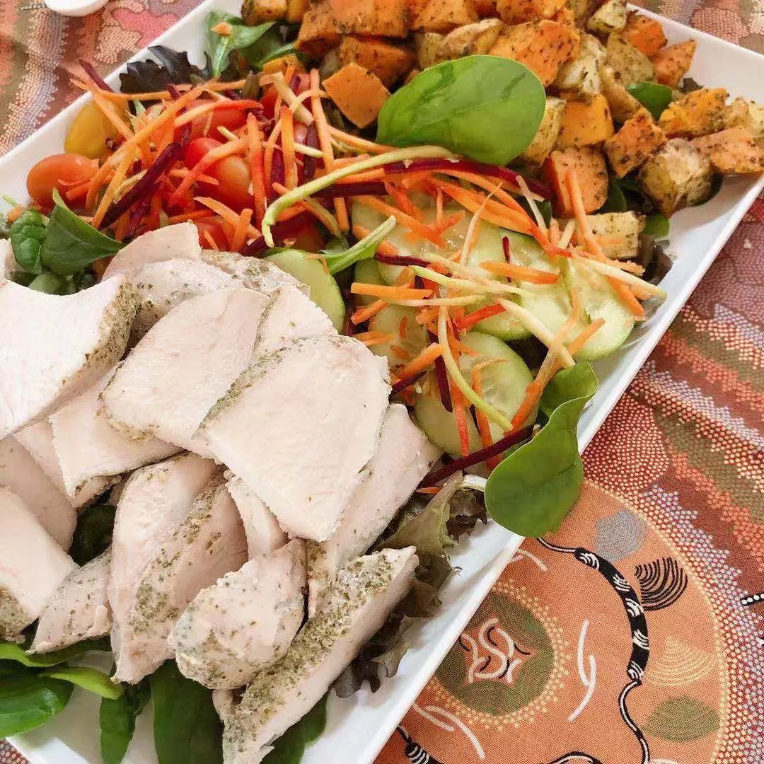 印花的桌布上,酥脆的面饼包裹着袋鼠肉,成就了一抹特殊的香气,是袋鼠特有的味道。鸡肉用当地特有的香草烹饪,有淡淡的柠檬香。