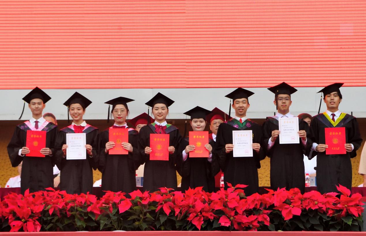 在学校毕业典礼上作为毕业生代表接受授位