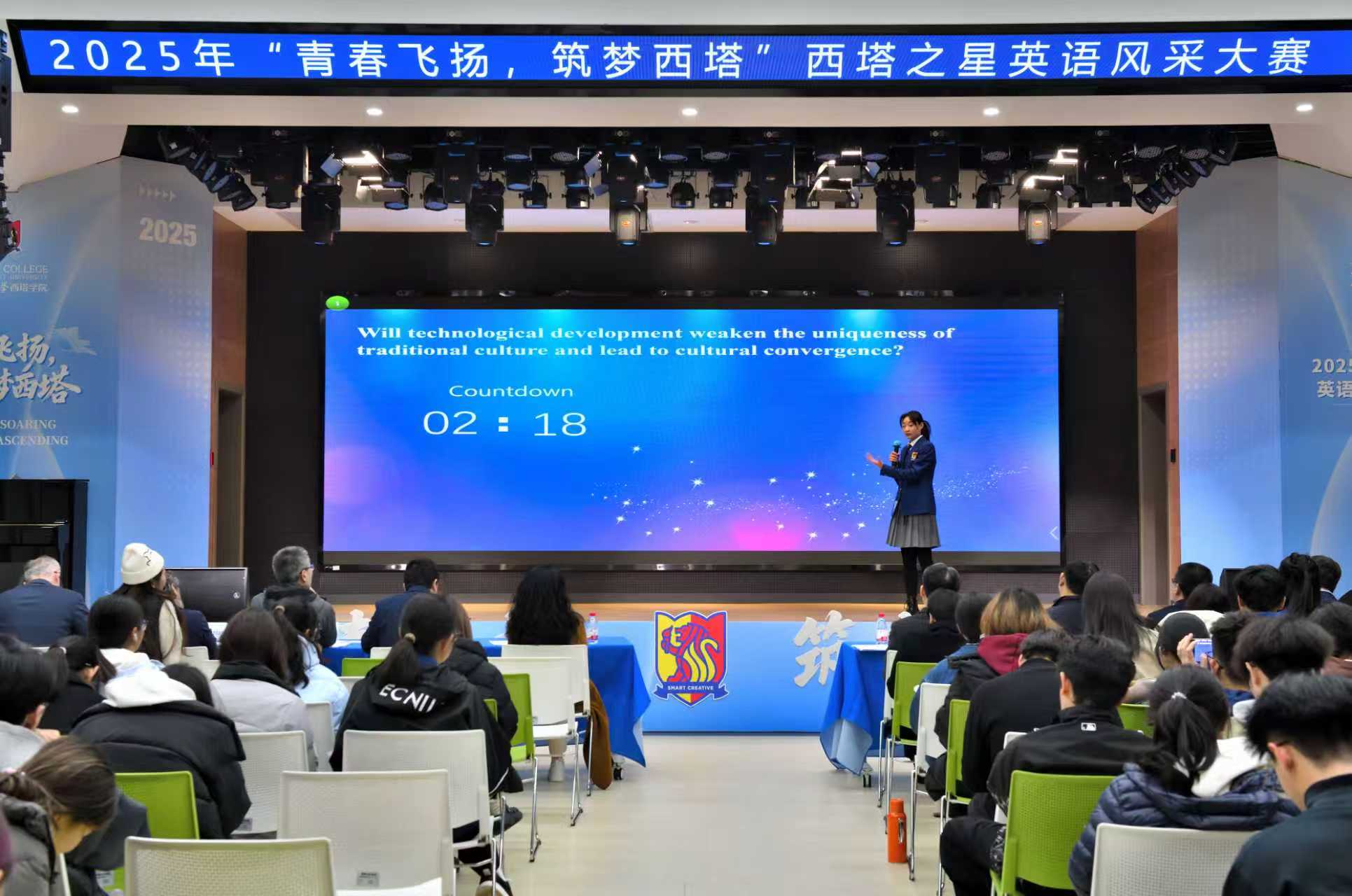 这场见证青春与梦想的英语风采大赛,凝聚着师生对多元文化交融魅力的共同阐释,全面展现了西塔学子青春活力与精神风貌。“西塔之星”们在舞台上留下的一个个精彩瞬间,终将化为激励全体学子奋勇向前、追逐梦想的强大动力。