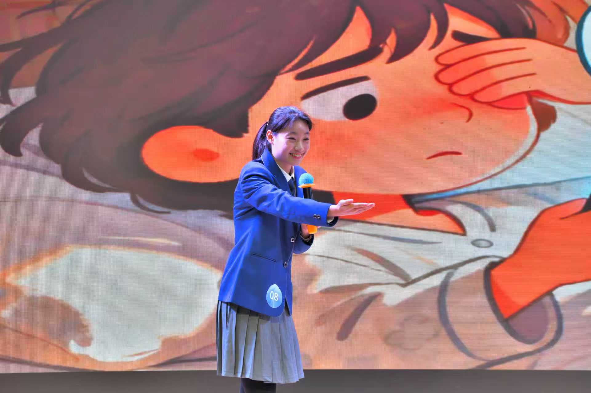 在英语趣味配音环节,选手们现场抽取素材后迅速投入角色。他们以精准的语音控制、细腻的情感传递与恰到好处的节奏把控,将角色特质生动还原。从情绪转折到语调起伏,无不彰显出扎实的语言功底与灵活应变能力,让现场氛围持续升温,掌声此起彼伏。