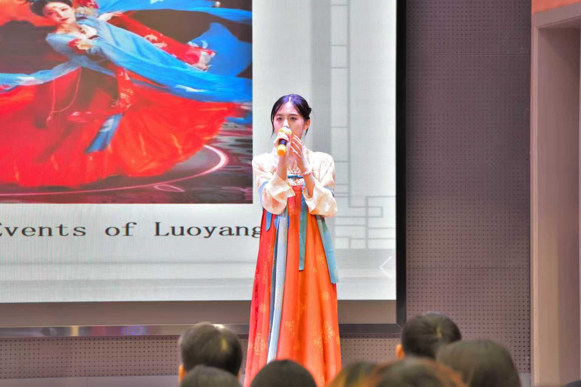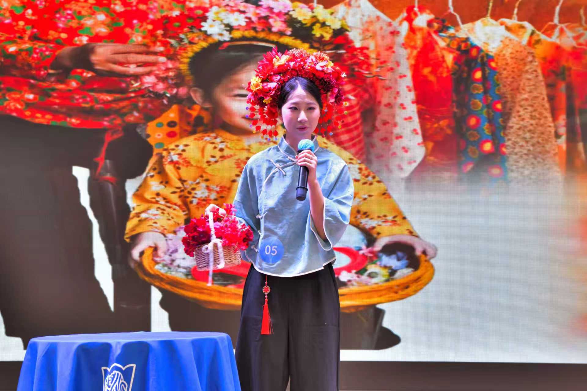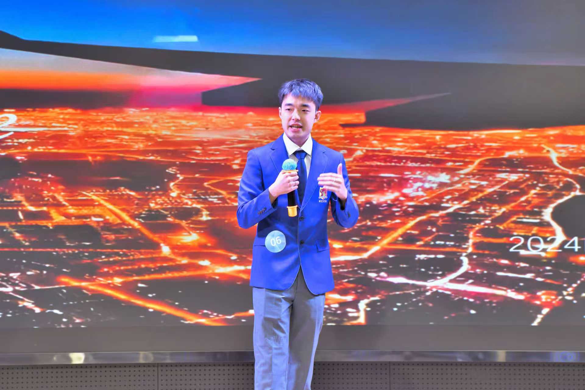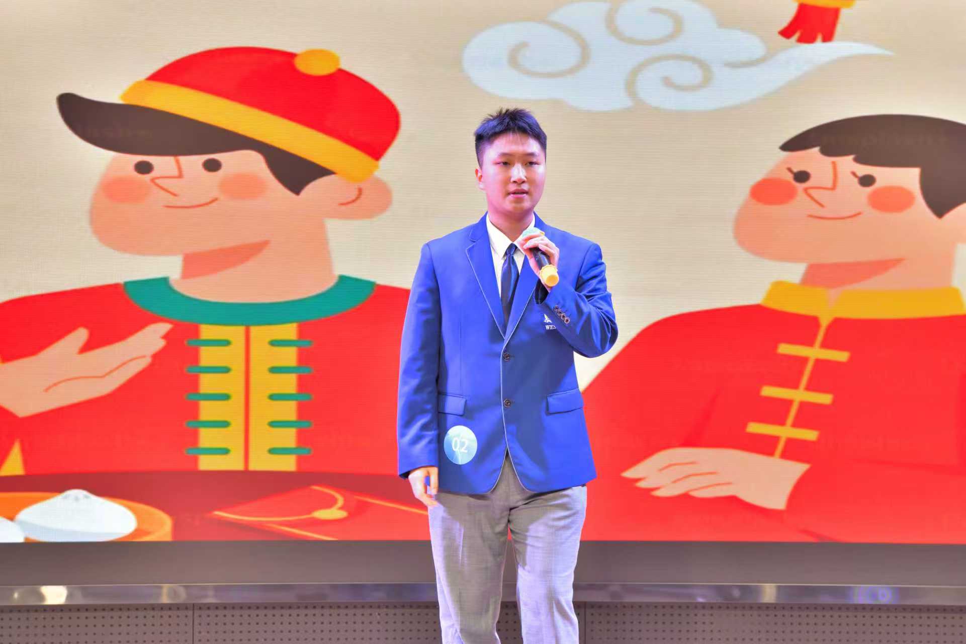 决赛共设置英语主题演讲、英语趣味配音和即兴演讲三个环节。第一环节以“Westa's Voice, China's Stories”为主题,选手们通过视频、图片及现场表演等形式全方位地展现对于传统文化及时代发展的认识,演讲涵盖中国舞、变脸、茶文化、刺绣、簪花、乡村振兴等多个主题,兼具文化厚度与时代温度,既彰显了青年一代对中华优秀传统文化的热爱与传承担当,更传递出当代学子坚定文化自信、主动讲好中国故事的青春态度。