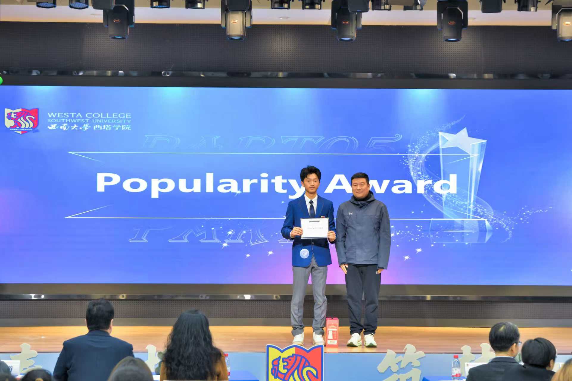 最终,高飞宇同学凭借出色表现脱颖而出,成功摘得“西塔之星”桂冠;胡明洋同学荣获“最佳人气奖”,丁鑫琳同学荣获二等奖;包彦晨、周桐灿同学荣获三等奖;张宁、肖博文、胡明洋、杨熙宇、郭浩林、薛程源同学荣获优秀奖。