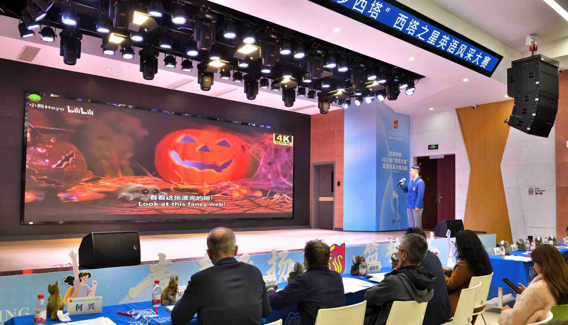 比赛开场前,现场循环播放了十位决赛选手精心制作的个人VCR。影片中,选手们分享成长感悟、展现专业特长,以自信从容的姿态尽显青春风采,让观众提前领略到西塔学子的综合素养与昂扬朝气。