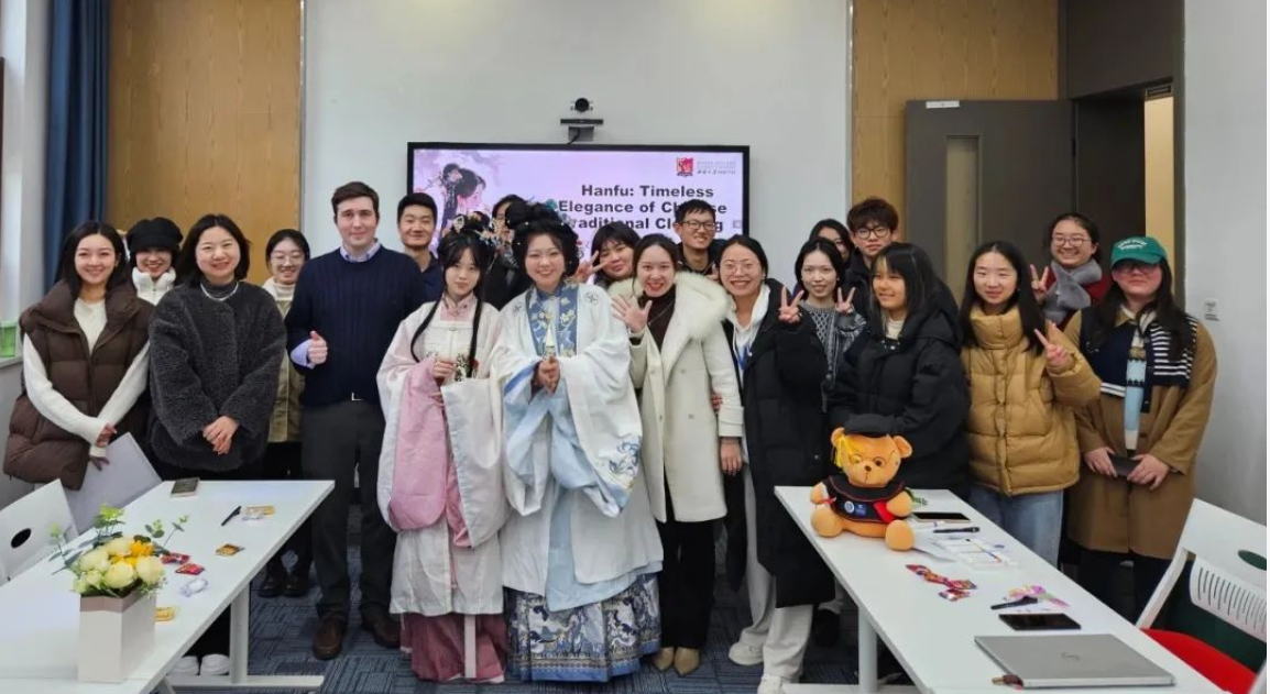 活动伊始,汉服协会的同学为现场师生带来了一场飘逸雅致的汉服走秀,展示独具特色的汉服,带领师生领略汉服之美。Luke兴奋地说:“汉服太漂亮了”。随后,师生们共同观看了全英文汉服科普视频并回答了关于汉服起源的问题,加深了对汉服常识的了解。