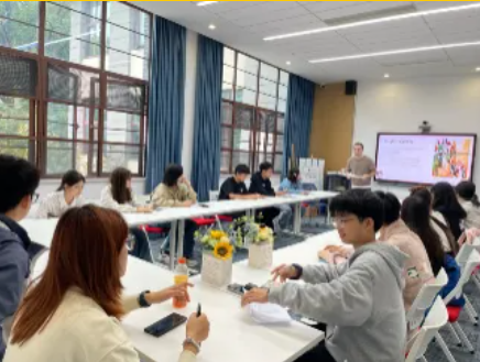 活动过程中,Bret介绍了中外经典民间故事,包括Snow White and the seven dwarfs、The Ugly Duckling、JingWei Fills the Sea、Kong Rong Shared Pears等等。随后,他讲解了Folk Story的基本组成要素,并指导大家通过小组合作的形式围绕“Hero、Villain and Helper”创作心目中的故事。同学们非常享受创作过程,还踊跃分享自己的故事。