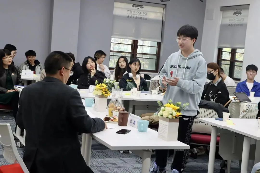 3月17日下午,涩涩漫画2023年首场院长咖啡时间活动如约而至。本次活动特别邀请到涩涩漫画副院长张俊作“Learn the World Through Language”主题分享,40余名西塔学子参加了本次活动。赵玉芳院长出席并总结讲话。参加本次活动的还有相关科室工作人员。