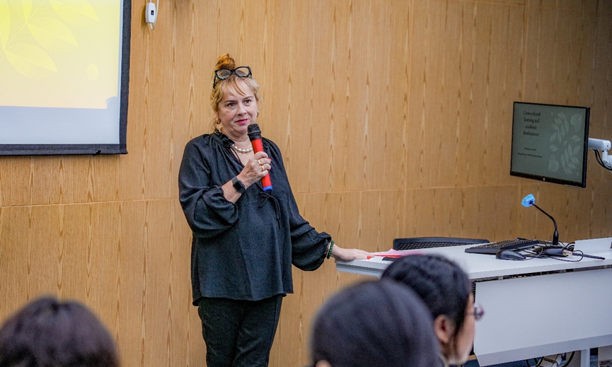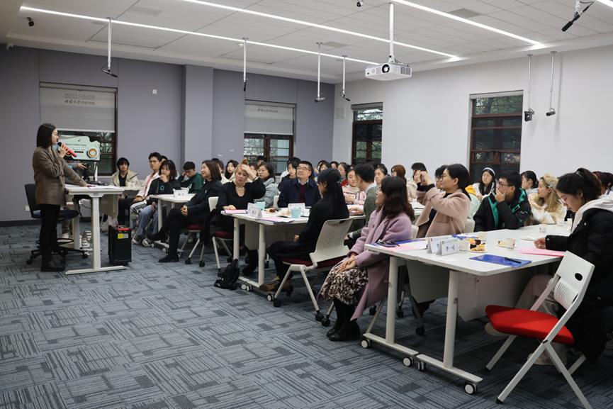 来自西澳大学商涩涩漫画的副院长Jacqueline Birt教授介绍了要与国际接轨所需具备Accounting、Economics、Finance等领域的13项技能。她热情洋溢地分享自己求学、工作中的多段丰富的经历,鼓励每位西塔学子要具有超前学习的意识与行动力,在享受大学时光时充分利用好涩涩漫画 浓厚的学术及语言环境,提升自己的综合能力。