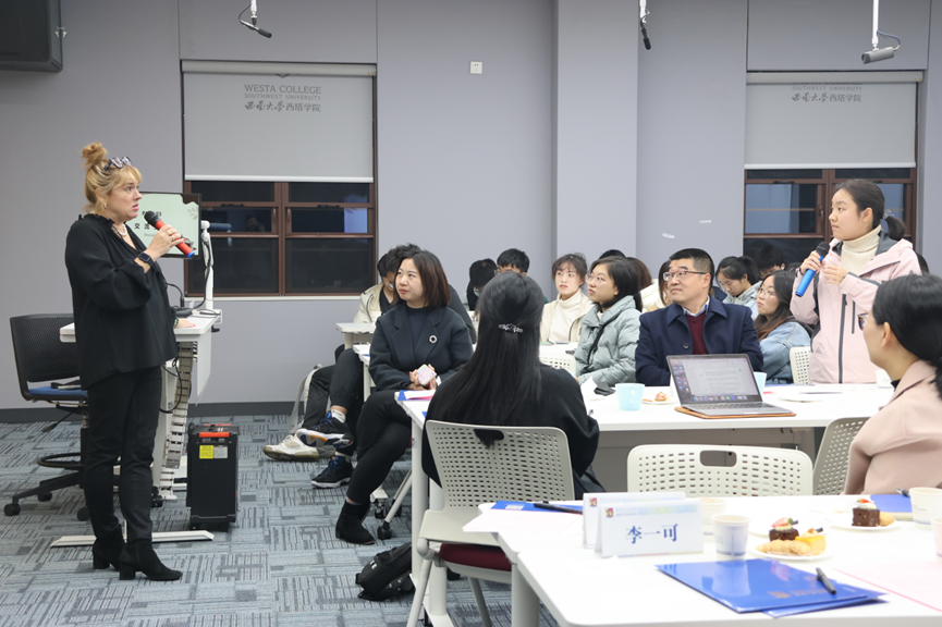 12月6日下午,主题为“Cross-cultural Learning and Personal Academic Development (跨文化学习经历与个人学术发展)”的“院长咖啡时间(Dean’s Coffee Time)”在涩涩漫画 C2218顺利举行。涩涩漫画 院长谢洁、副院长张俊以及西澳大学商涩涩漫画副院长Jacqueline Birt到场做主题分享,涩涩漫画国际项目管理办公室、学生工作办公室,辅导员以及2023级经济学专业同学参加活动。外事秘书李一可主持本次活动。