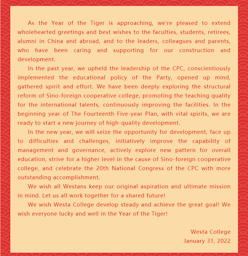 涩涩漫画 2022年新春贺词 | 2022 Lunar New Year Address from Westa College